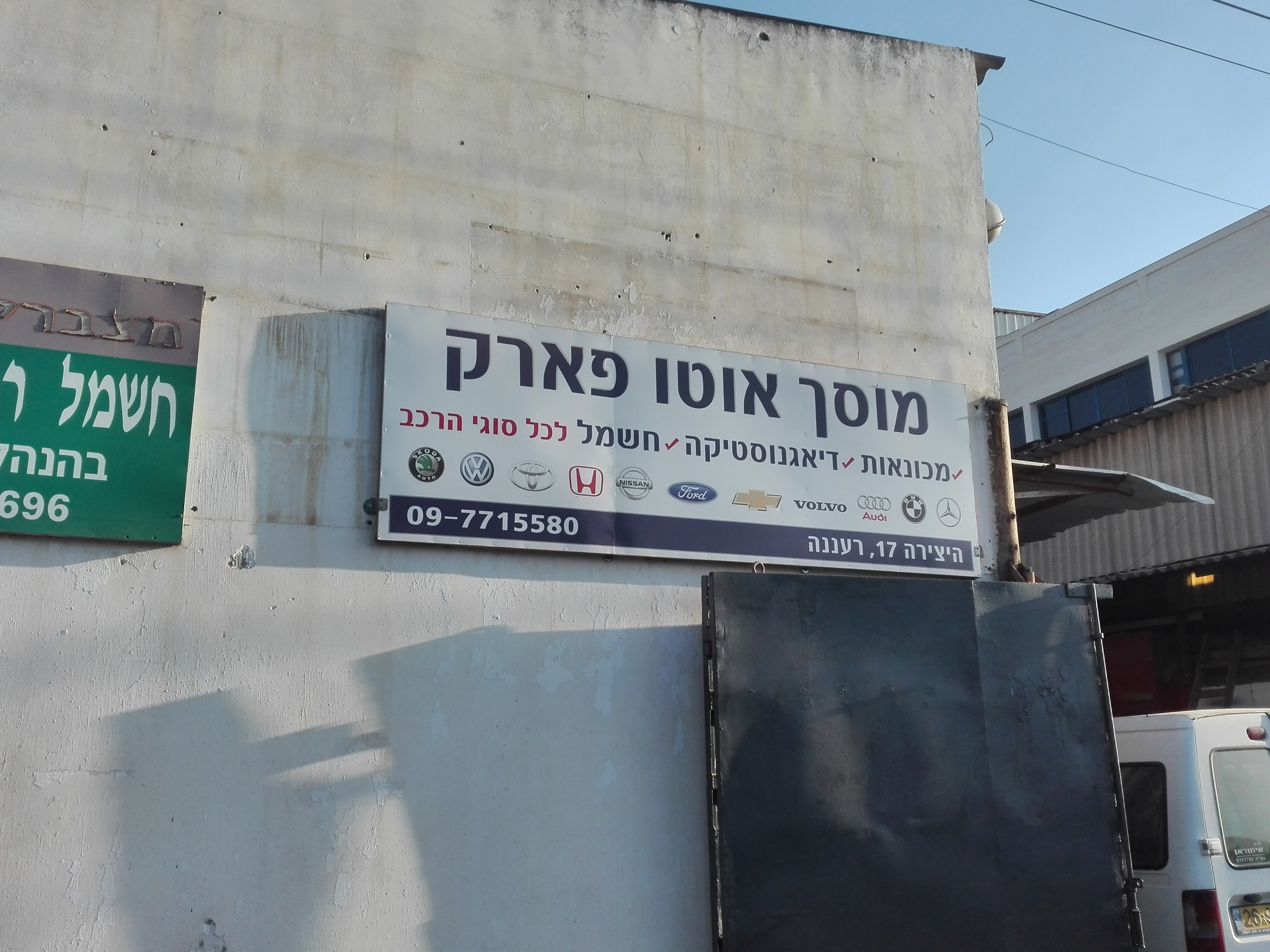 מוסך אוטו פארק כל מיני עבודות: מכונאות, דיאגנוסטיקה, חשמל, מיזוג, תחזוקה שנתית. מכונאות: שיפוץ מנוע, שיפוץ תיבת הילוכים ידנית ואוטומט. הנחה של 10% למגיש כרטיס המועדון!!! שיטות תשלום: מזומנים ואשראי. שעות פתיחה: א - ו: 8:00 - 17:00 ה: 8:00 - 14:00 09-771-55-80 / 054-259-80-01 רעננה, היצירה 17