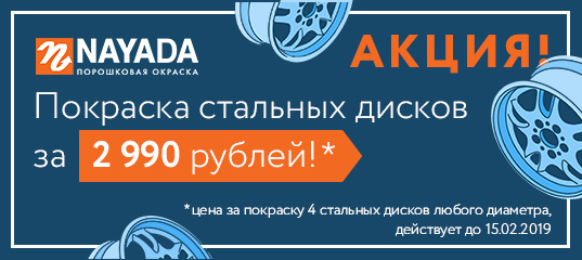 Невероятная зимняя акция на покраску стальных дисков! Только до 15 февраля 2019 года на окраску стальных дисков для легковых автомобилей в любой цвет у нас действует специальная единая цена - 2 999 рублей за комплект. Диаметр дисков на стоимость не влияет! В цену включены: пескоструйная обработка, грунтовка и покраска дисков. В рамках акции диски можно покрасить в любой цвет, акция не действует на эксклюзивные цвета. Скидка предоставляется только по купону. Купон можно распечатать или сохранить на телефоне.